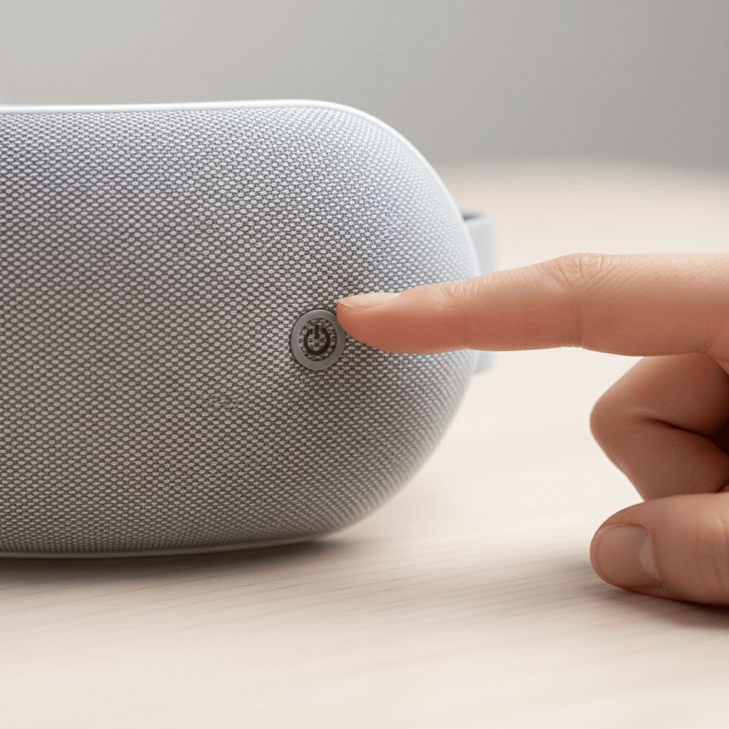 The E3 uses a simple, two-part process to provide relief. First, a steady, safe warmth (38–42 °C) circulates to soothe tension around your eyes and temples. At the same time, gentle air pockets rhythmically press and release on your temples and brow, easing the day's built-up pressure. It’s a 15-minute session that leaves you feeling calmer.